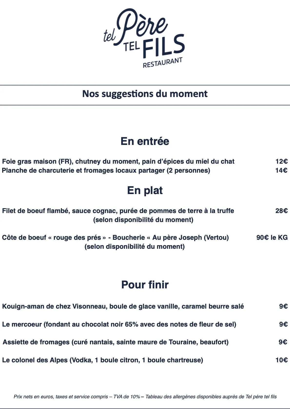 « Au gré : des saisons, des inspirations du chef, des envies de la famille, des idées de nos convives, des caprices de dame Nature, de la qualité de nos approvisionnements, de l’envie de privilégier les circuits courts.